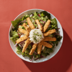 Grilled Chicken Salad with Crispy Chicken Strips, without dressing or toppings ‘